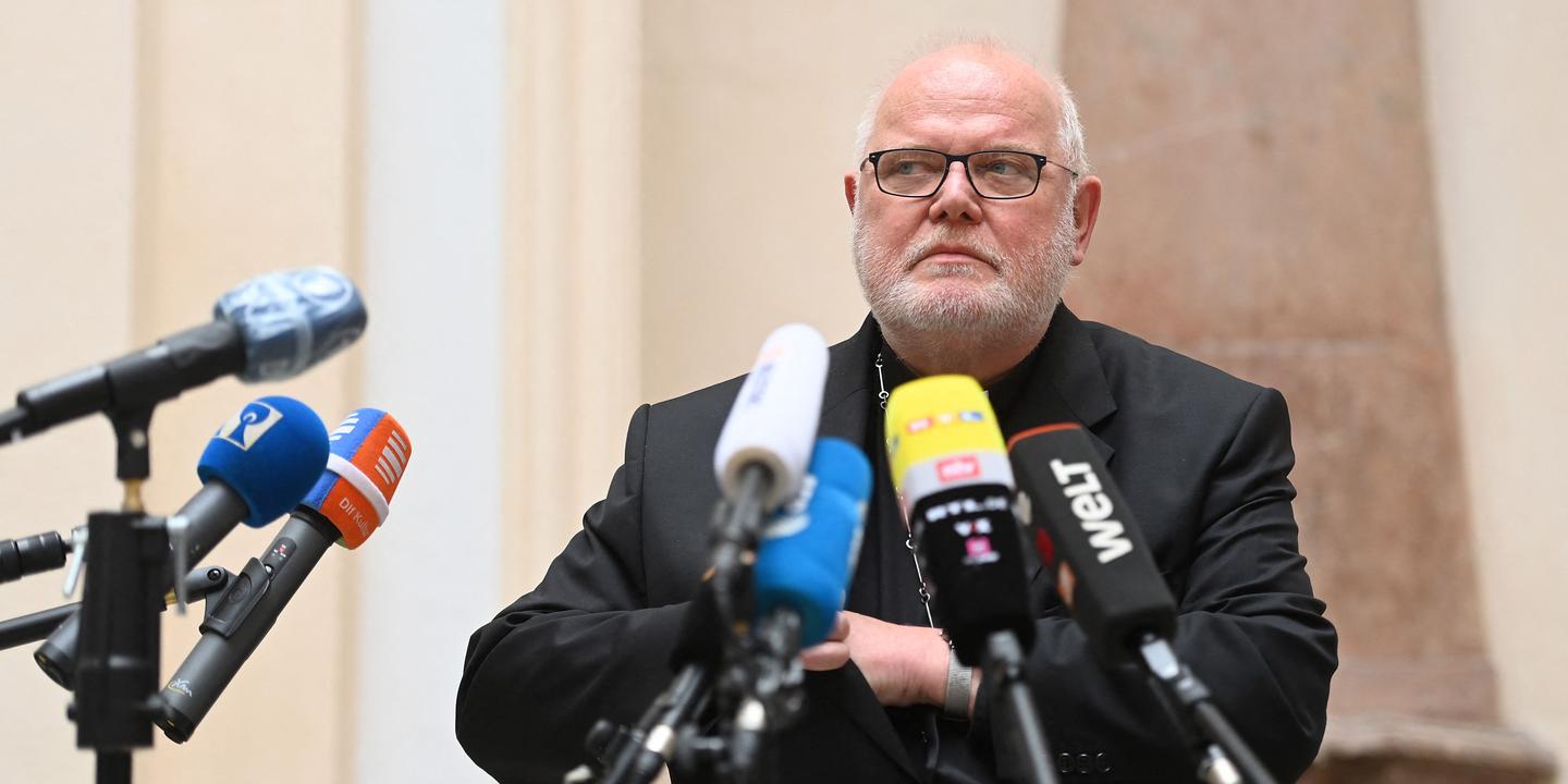 Le cardinal Reinhard Marx, archevêque de Munich, annonce sa démission le 4 juin 2021 à Munich, Allemagne. LENNART PREISS / AFP